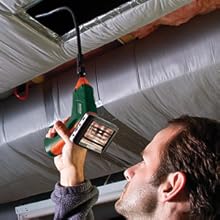 The Extech BR200 Video Borescope/Wireless Inspection Camera is useful in HVAC work to look inside ducts and behind motors or compressors, and in automotive work to get a closer look at engines and transmissions. Use it to inspect homes for mold, wiring and water pipe locations, and infestations. It's also a valuable tool in industrial and aerospace settings, to inspect the integrity of equipment, gears, and welds, or to look for contamination, debris, and damage in aircraft.
