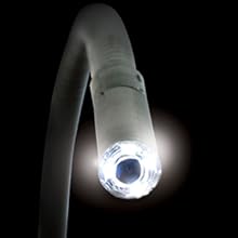 Flexible Gooseneck Cable Offers Better AccessMounted on a 39-inch gooseneck cable, the 9-millimeter camera head is waterproof and includes four LEDs for illumination in dark areas. The cable can be twisted for better viewing in high or hidden spots, and will continue to hold its shape as long as you need it.